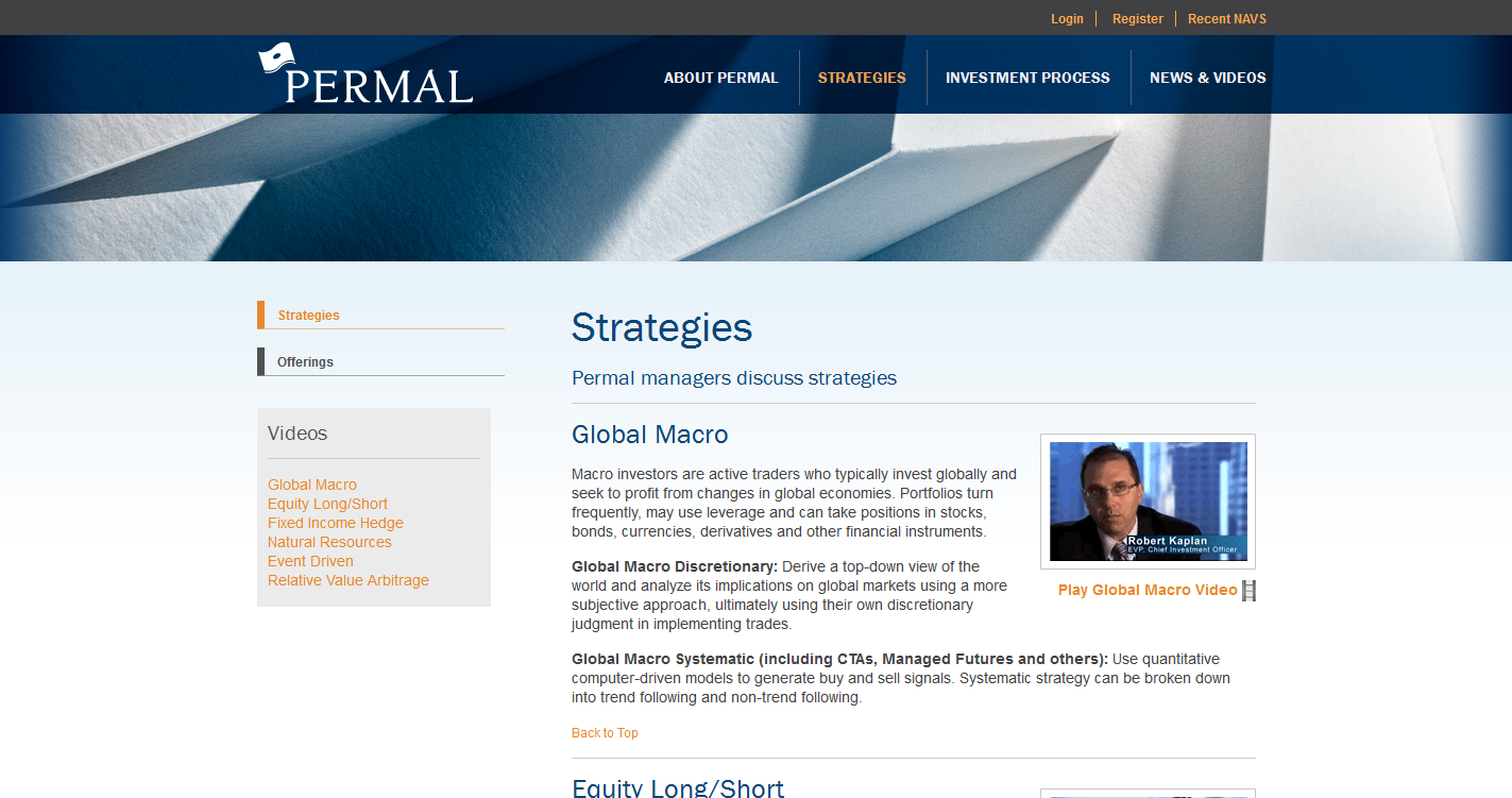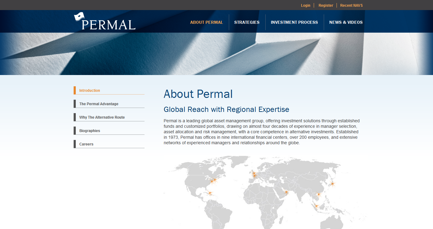 Redesign of communications and marketing material for Permal, a global financial services firm, including website and print including new design standards.